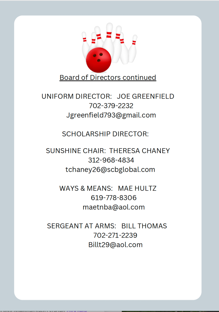 Monthly Tournament Director’s Report