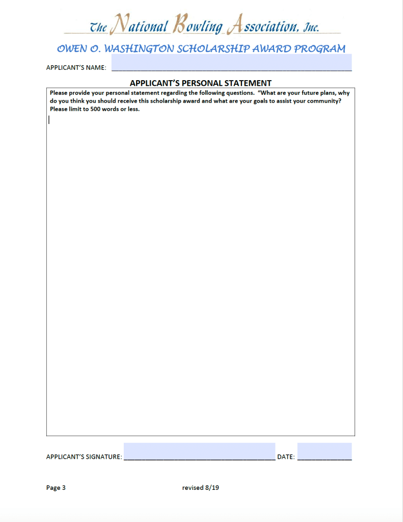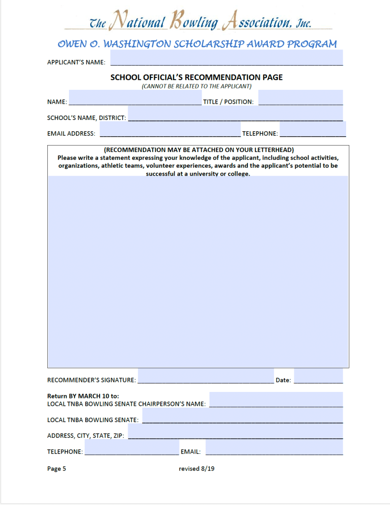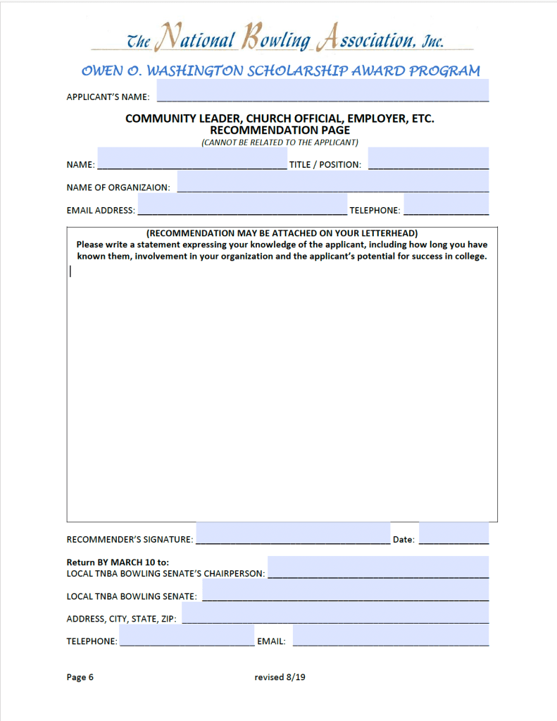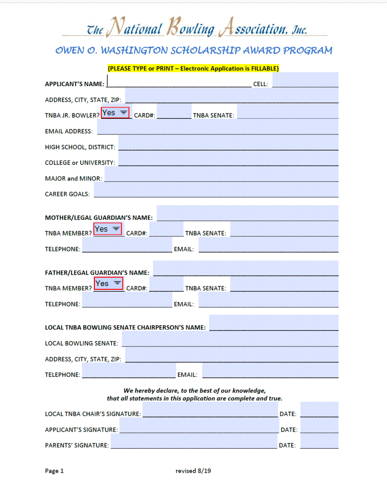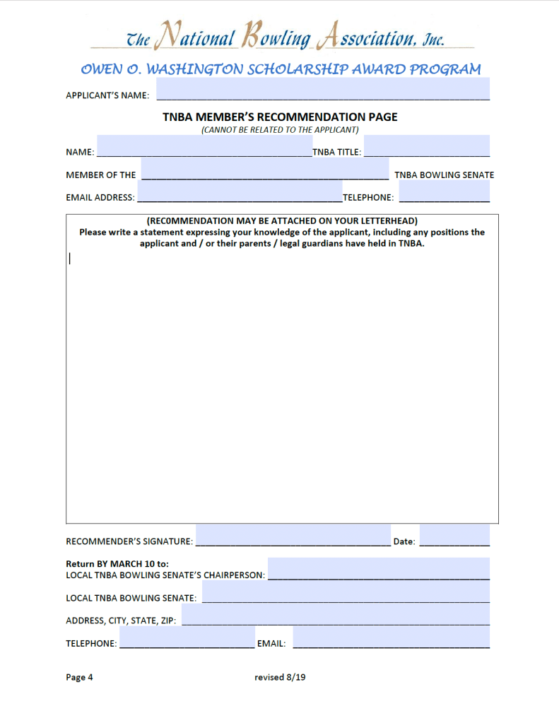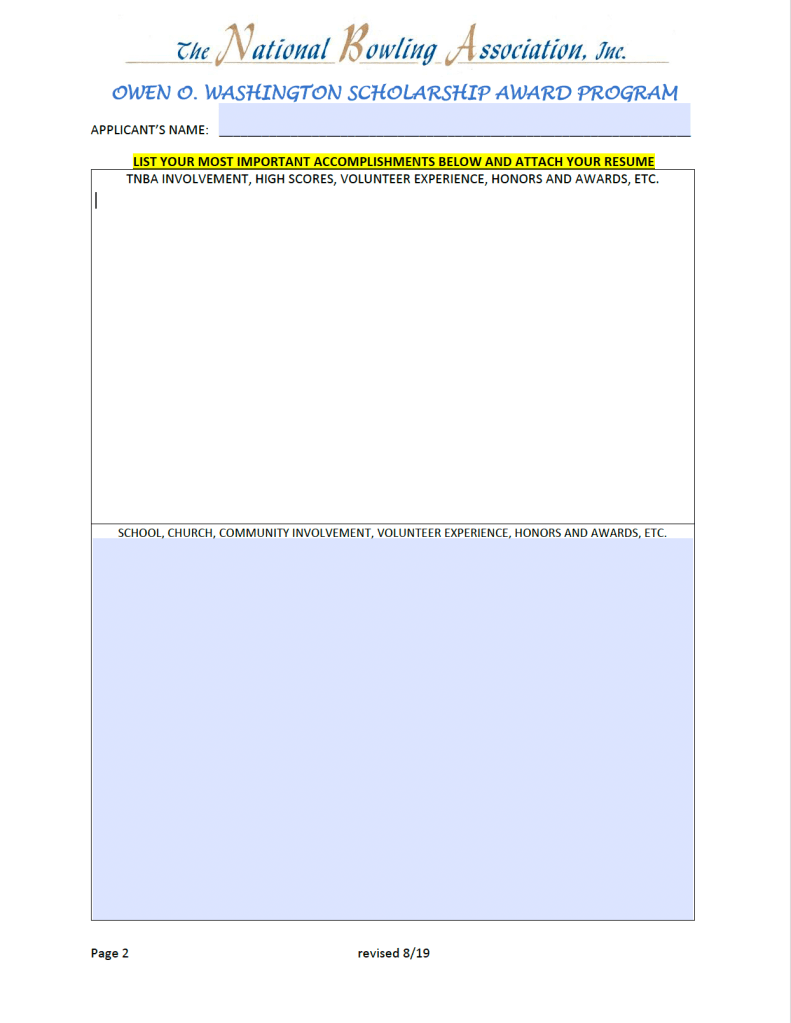 TNBA Owen O. Washington Scholarship Award Program (info and application)