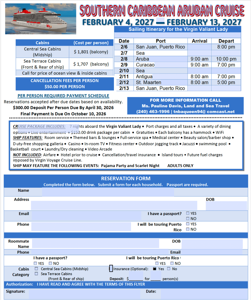 FEBRUARY 4 – 13…..PRICED FROM $1,700